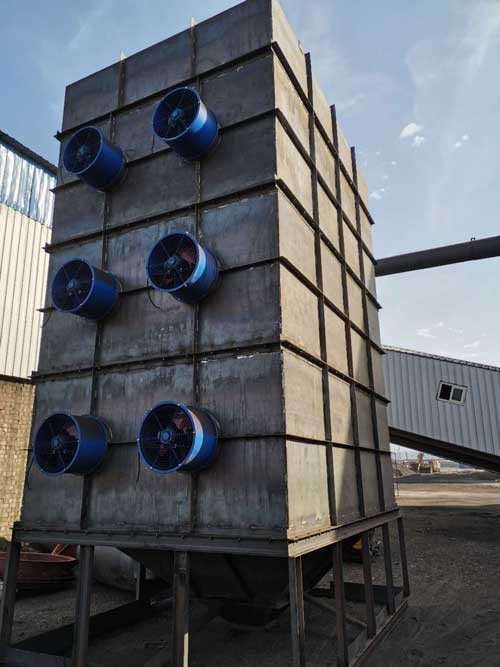 烘干后的熱蘭炭被送入蘭炭冷卻機(jī)種,然后冷風(fēng)開啟對蘭炭進(jìn)行均勻降溫,由于采用冷氣流的方式,降溫效率高,可在短時間內(nèi)將蘭炭從一百多度降溫至40度,這個溫度屬于蘭炭的安全溫度,可以正常的儲存和裝袋,對生產(chǎn)不造成任何影響。